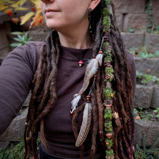 Ozdobné dready vyrobené ze zbytků přízí, ovčí vlny a odstřižků látek. Snadno je připevníte do každého účesu pomocí malé gumičky, která je součástí každého wrapu.