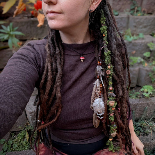 Ozdobné dready vyrobené ze zbytků přízí, ovčí vlny a odstřižků látek. Snadno je připevníte do každého účesu pomocí malé gumičky, která je součástí každého wrapu.