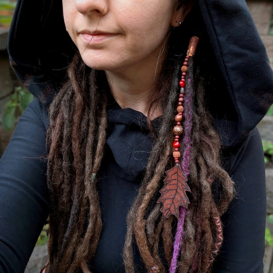 Mnou ručně vyráběné korálky s ozdobným závěsem/wrapem, kterými si můžete ozdobit své dready nebo copánky.