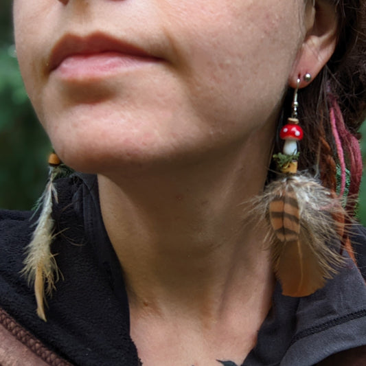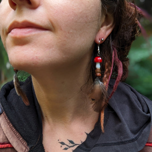 Dread bead toadstool with feather 1 (0.7 cm)