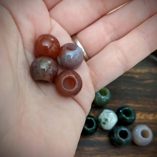 Beads that are suitable for decorating dreadlocks, but also thicker rasta braids, thanks to their larger hole. You will find here both industrially produced and handmade beads.