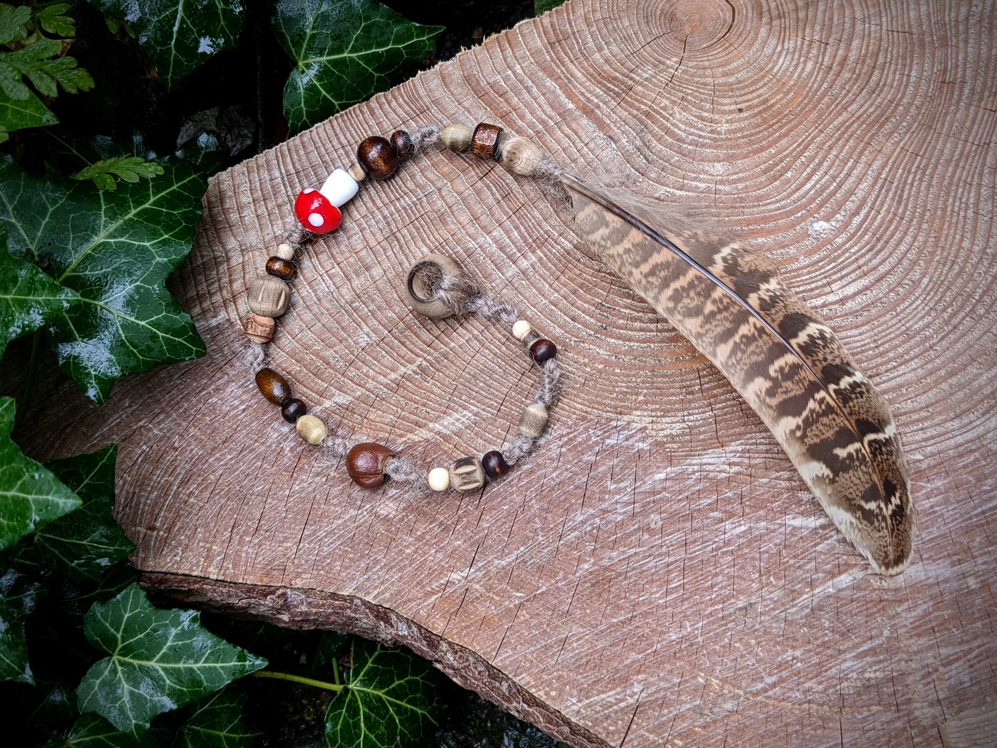 Dread bead toadstool with feather 1 (0.7 cm)