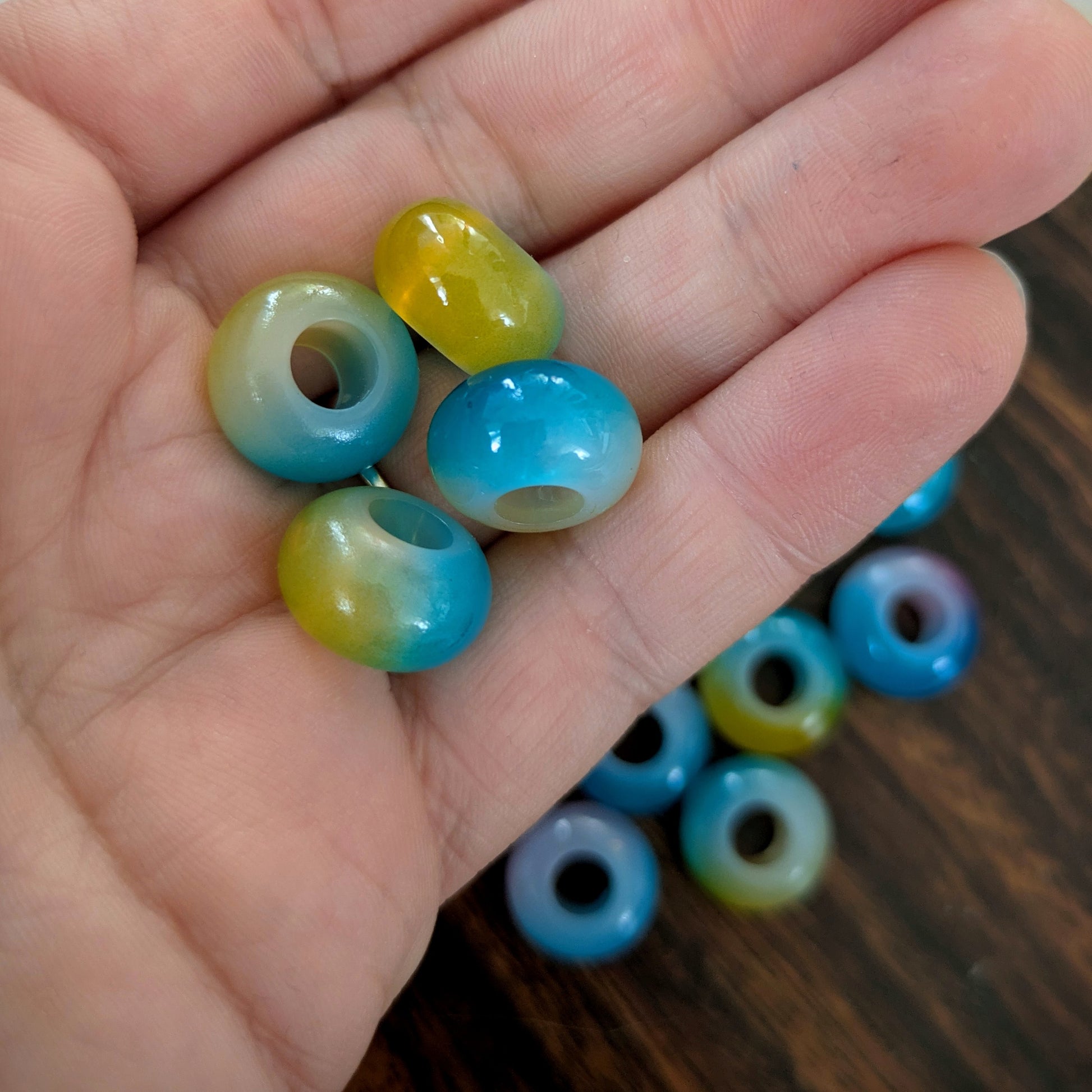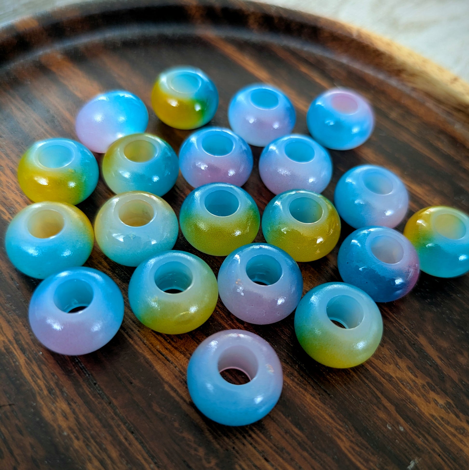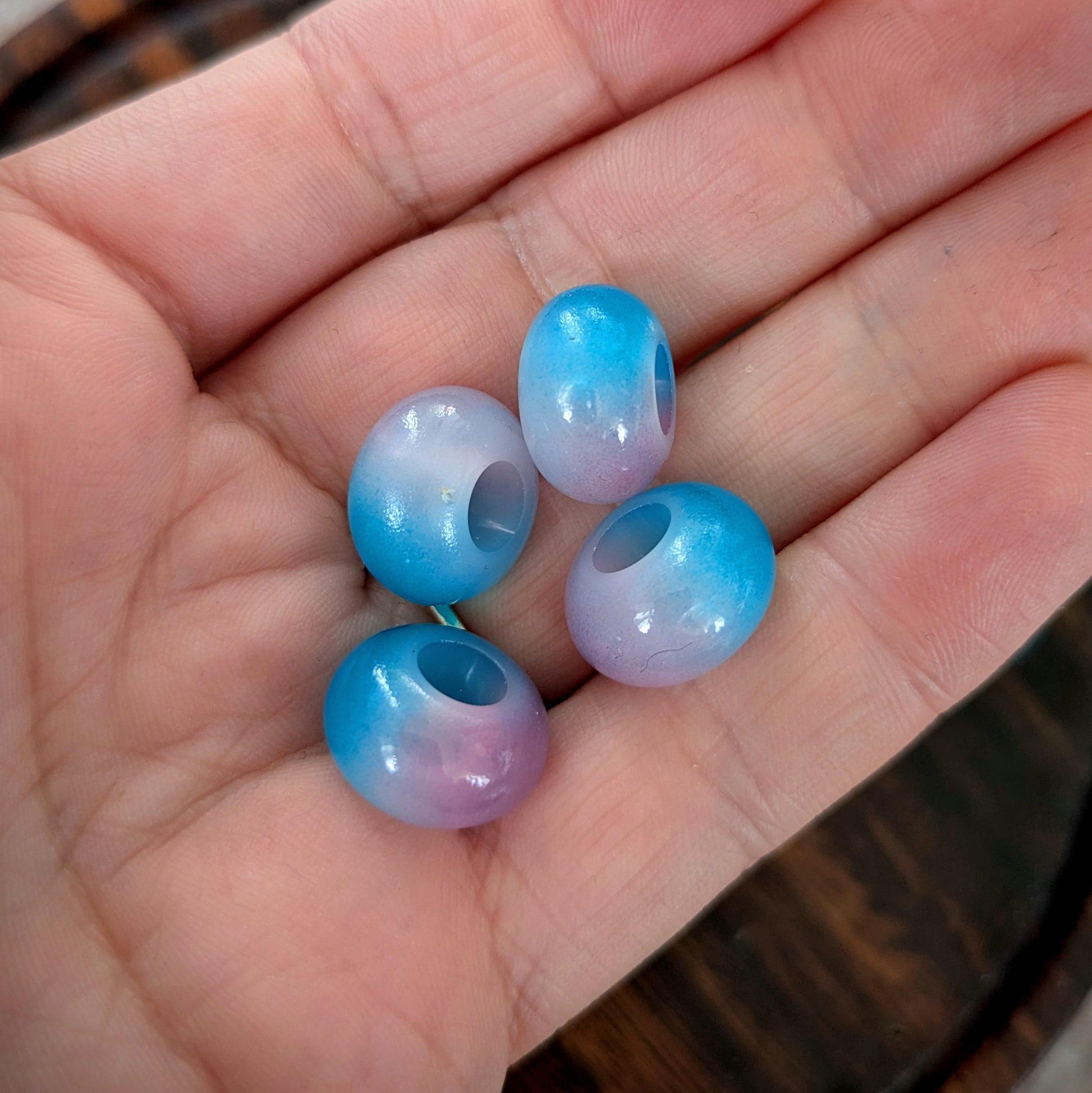 Akrylové dvoubarevné korálky vhodné na tenčí až středně silné dready.