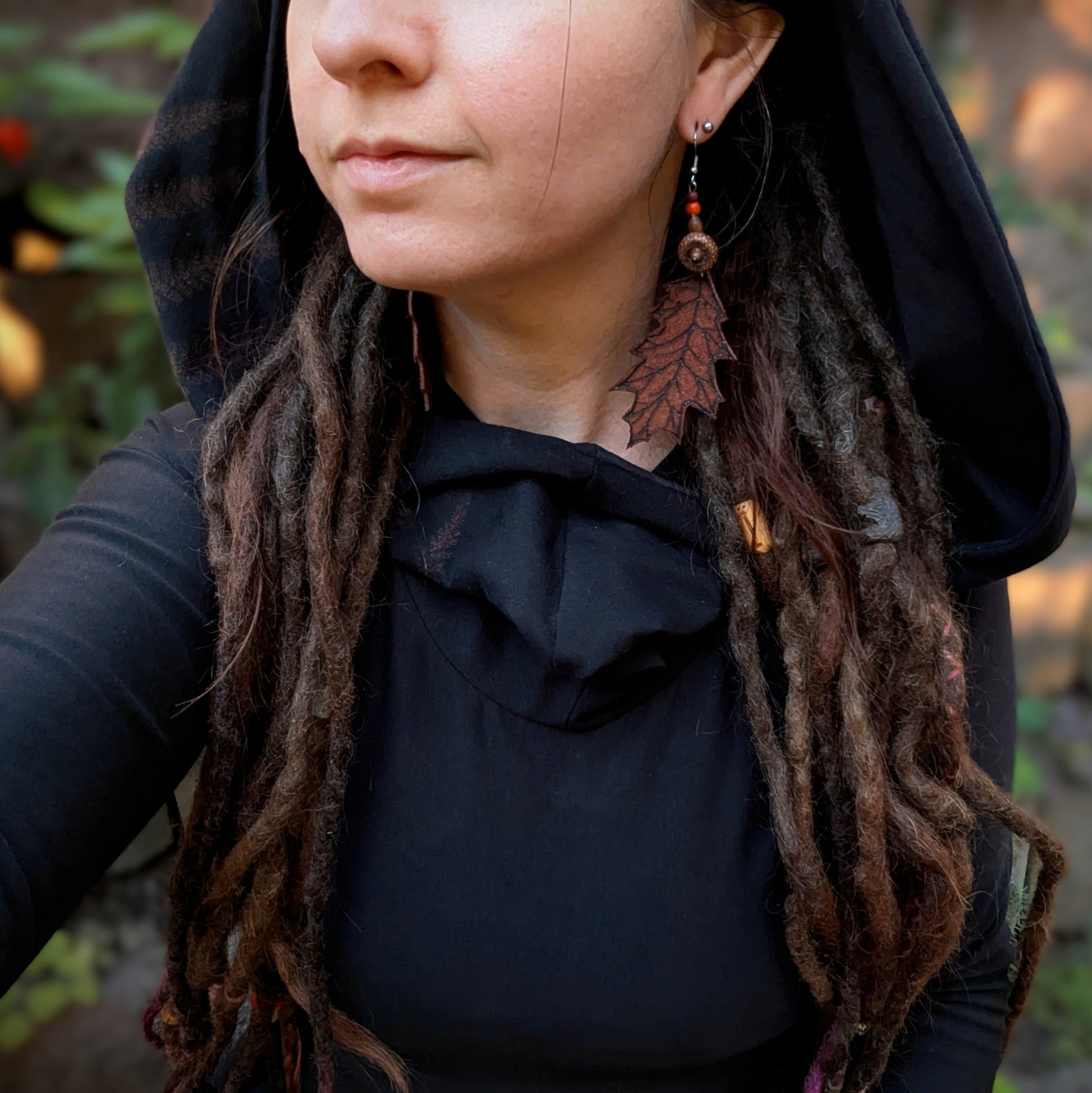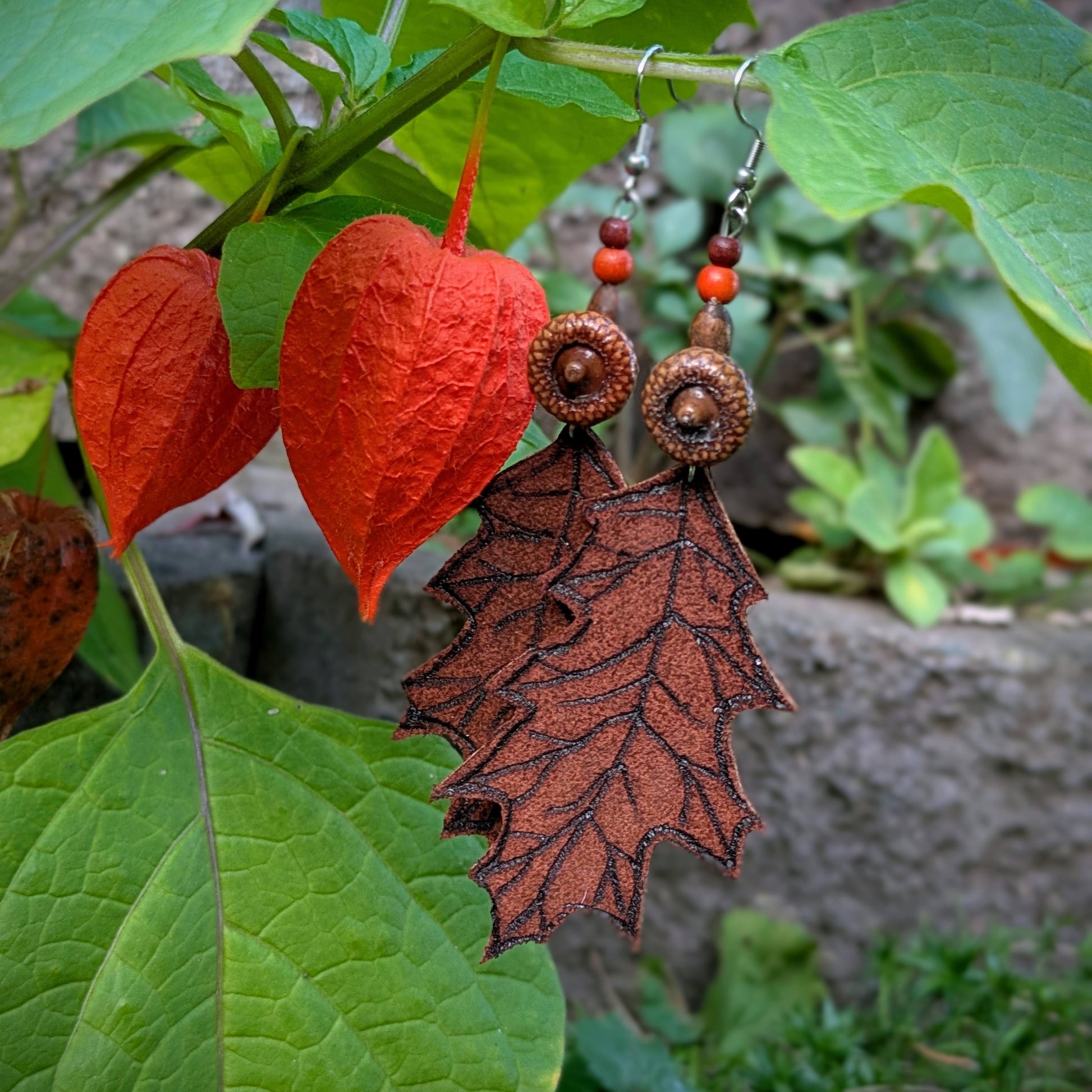 Distinctive feather earrings (ostrich, peacock...) complemented by wooden and bone beads. Hooks are made of surgical steel, supplied with silicone stoppers. The length of the decorative part of the earrings is approximately 12 cm.