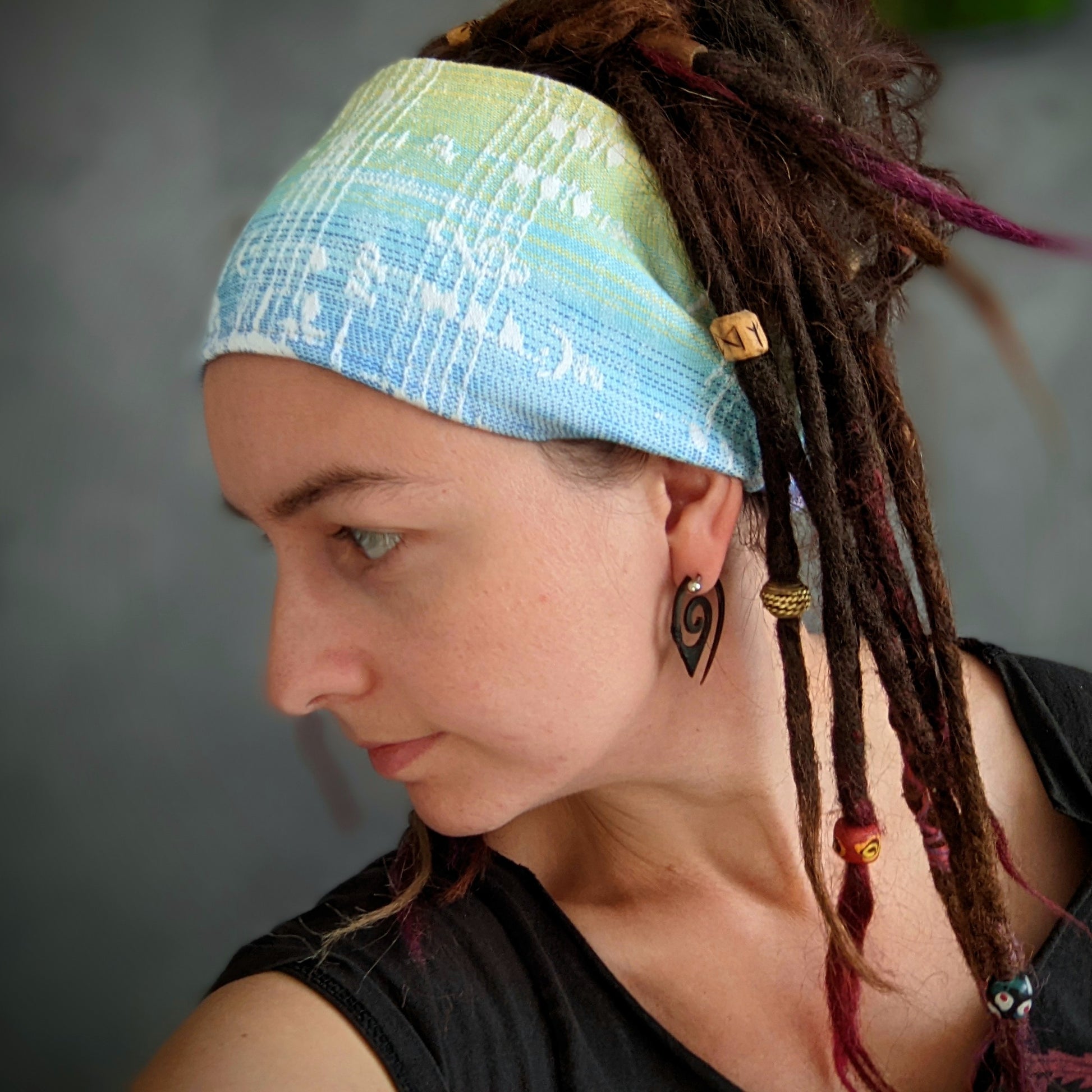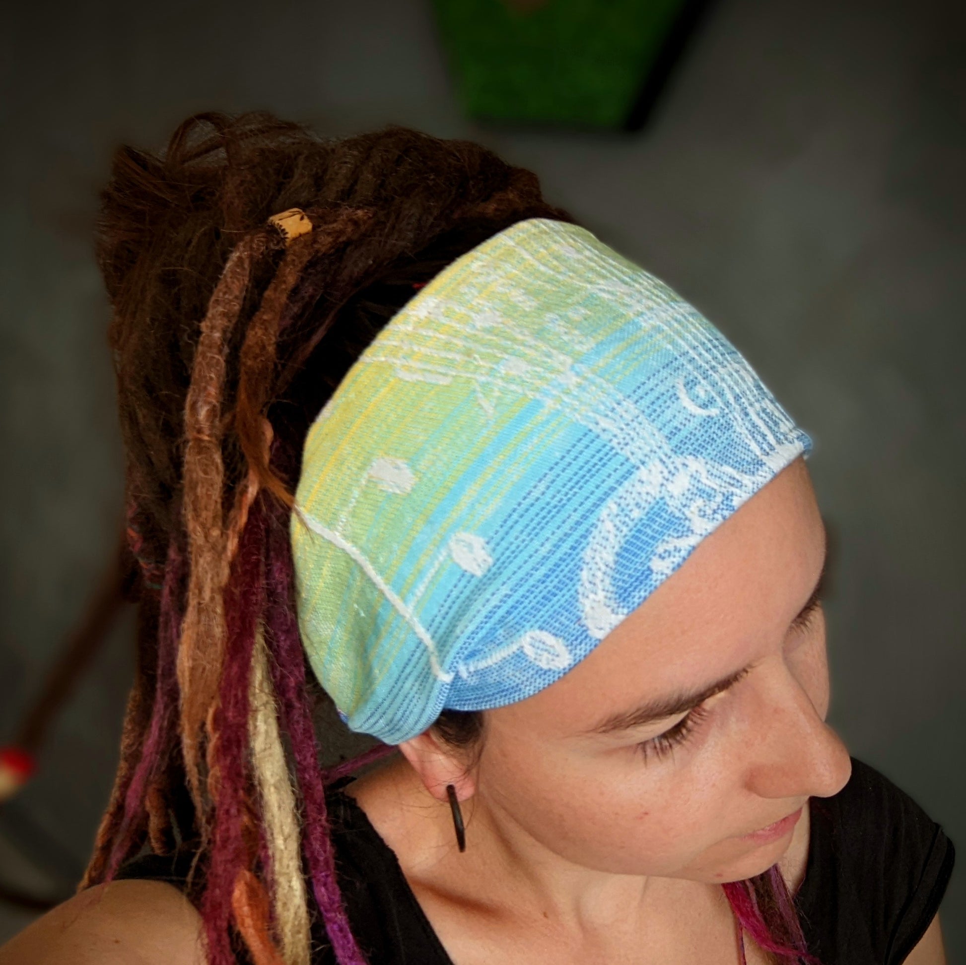 Practical scarf headband sewn from a babywearing scarf cutout.