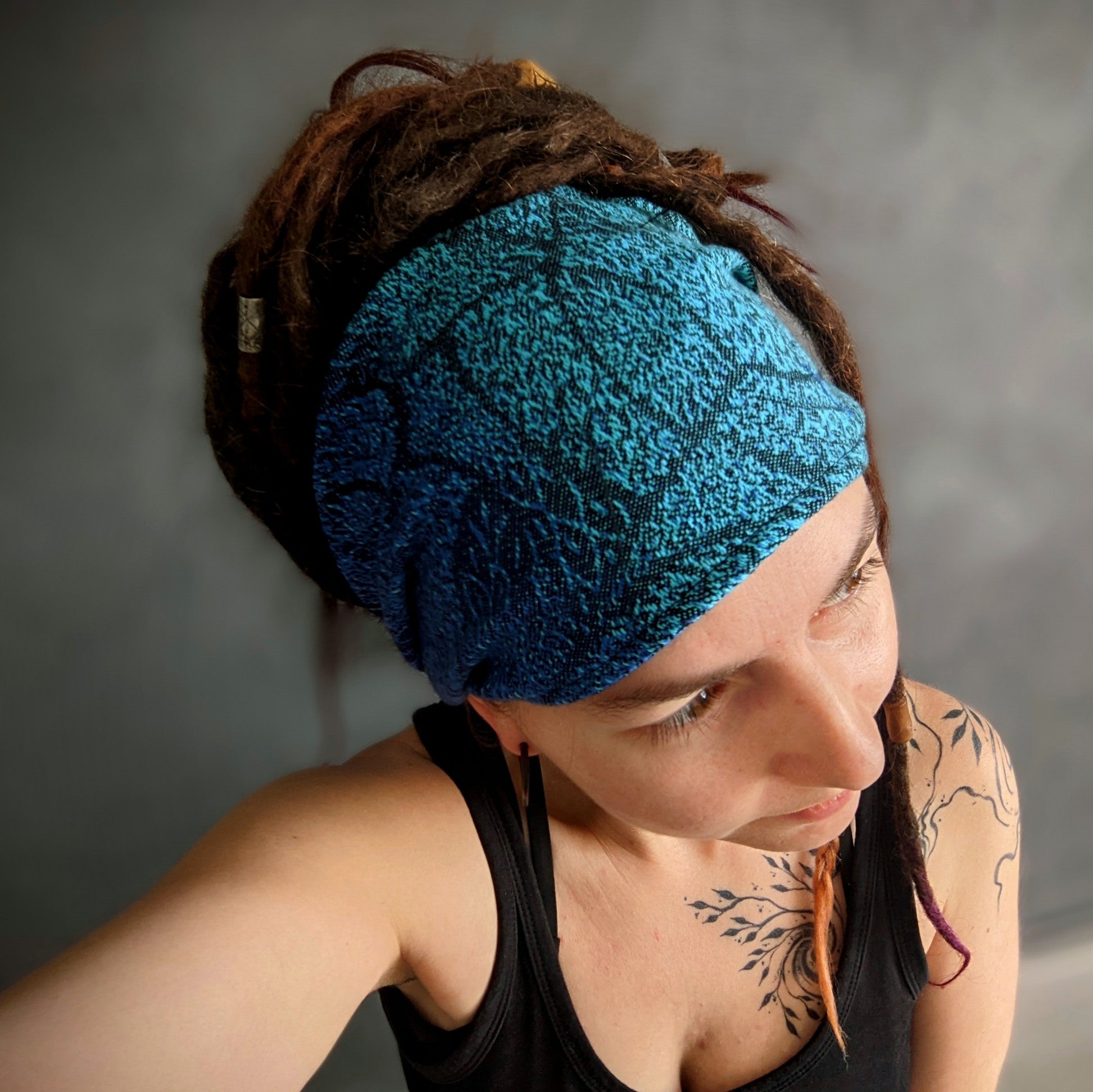 Practical scarf headband sewn from a babywearing scarf cutout.
