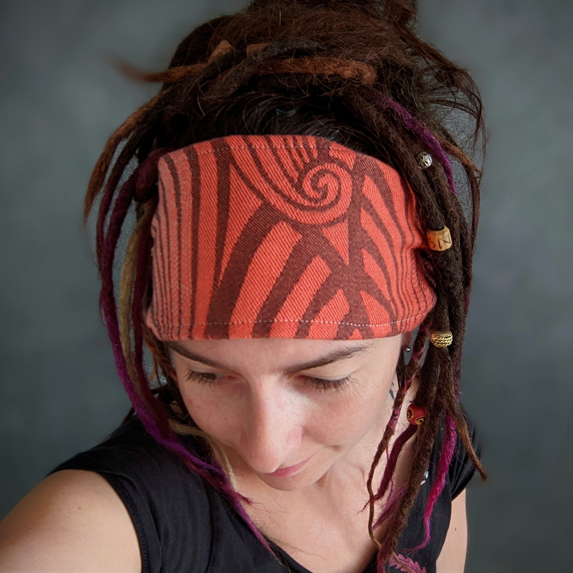 Scarf headbands are great for sports, for summer when you don't want the sun shining on your head, but also if you want to tame hair falling into your eyes. For braids, they are ideal for covering hair growth if you have had them braided for a long time and are also great for dreads and fake dreads. I try to sew the size as universal as possible.