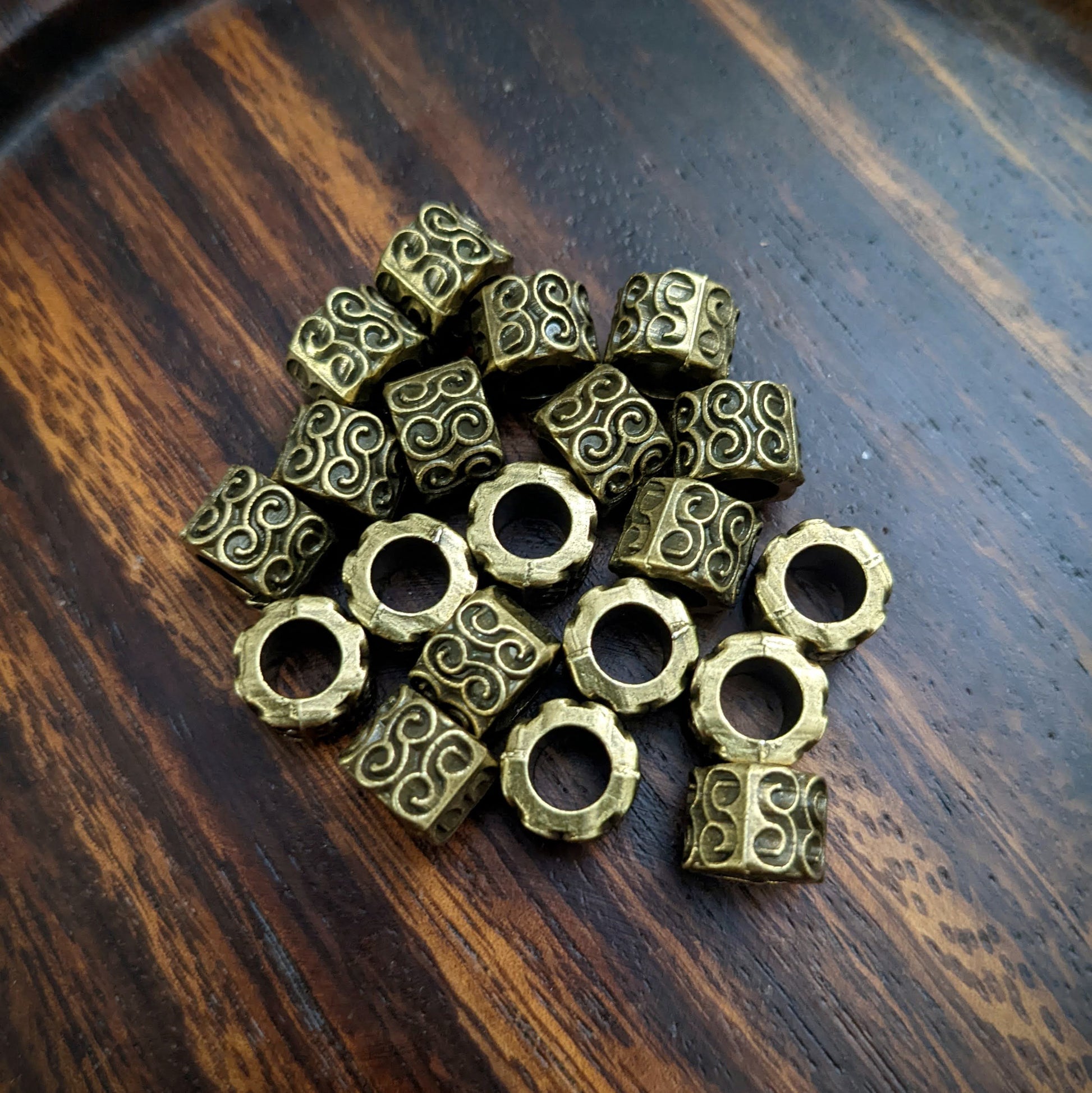 Kovové korálky mosazné barvy vhodné na tenčí až středně silné dready.