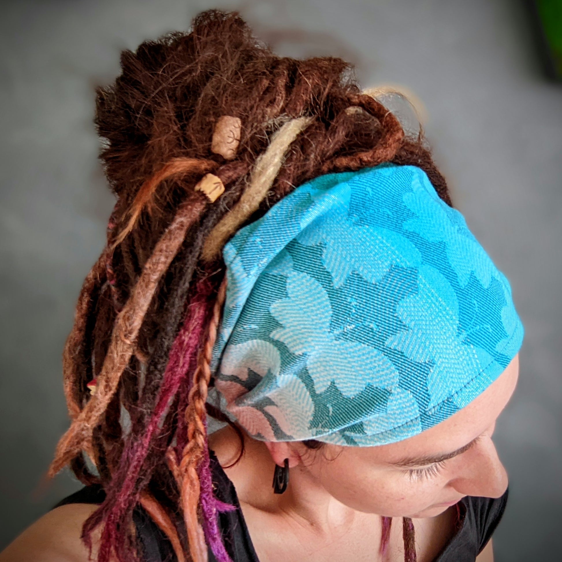 Šátkové čelenky jsou super na sport, na léto, když nechcete, aby vám svítilo na hlavu, ale také chcete-li zkrotit vlasy padající do očí. U copánků jsou ideální na zakrytí odrostů, pokud je máte zapletené už delší dobu a skvěle poslouží i na dready a fakedready. Velikost se snažím šít co nejvíce univerzální.