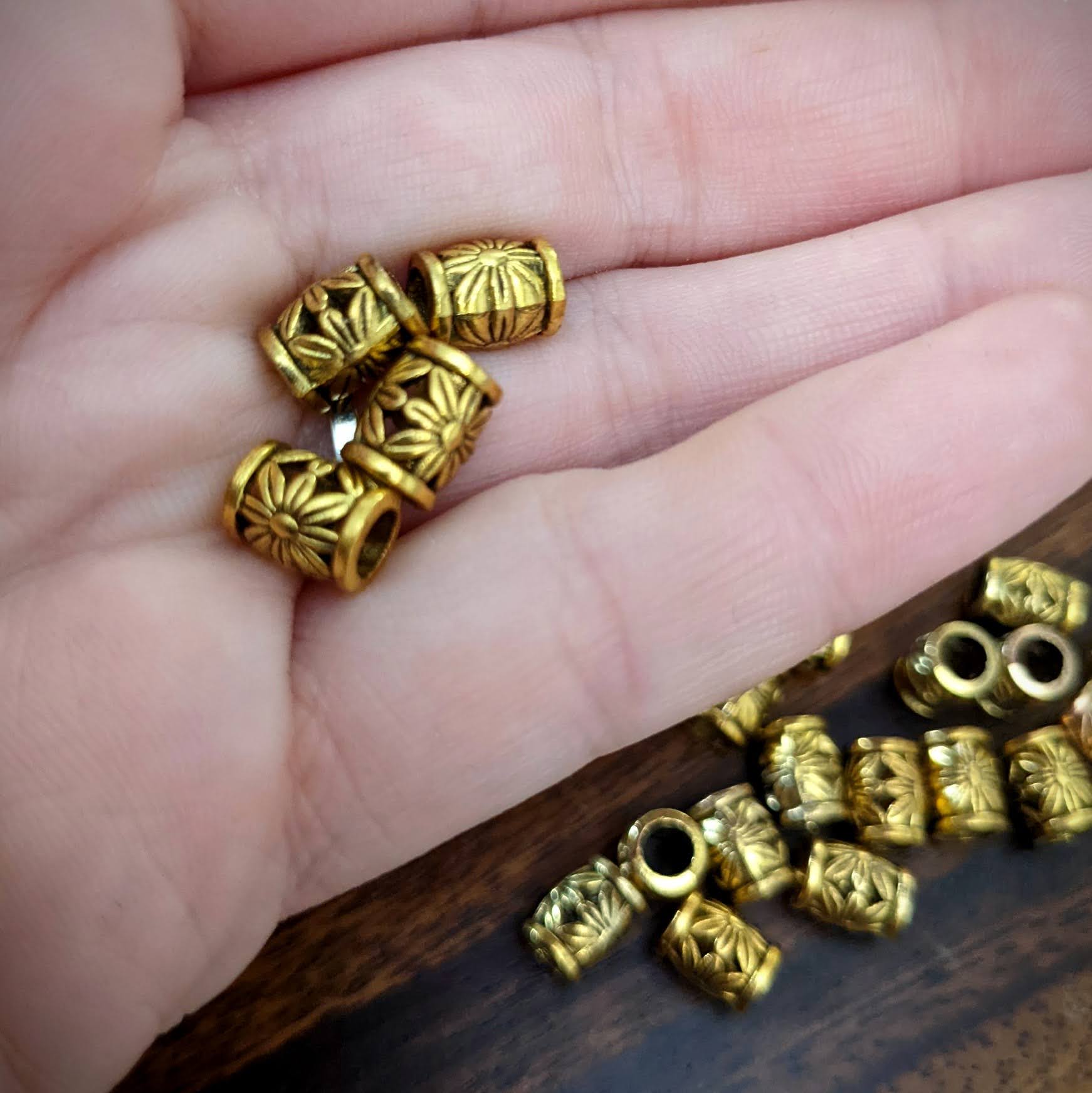 Kovové korálky zlaté barvy vhodné na rasta copánky nebo velmi tenké dready.