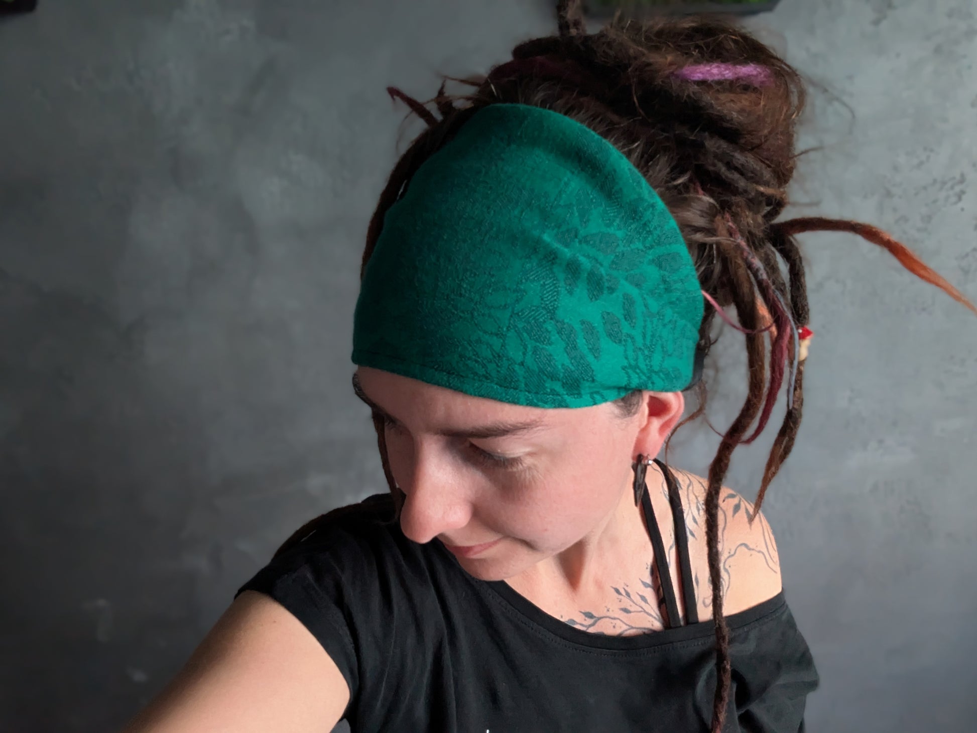 Šátkové čelenky jsou super na sport, na léto, když nechcete, aby vám svítilo na hlavu. Tato konkrétní čelenka má menší obvod hlavy, proto je vhodná spíše pro děti nebo pro menší dospělé hlavy :) Přes copánky nebo dready by mohla být těsná.