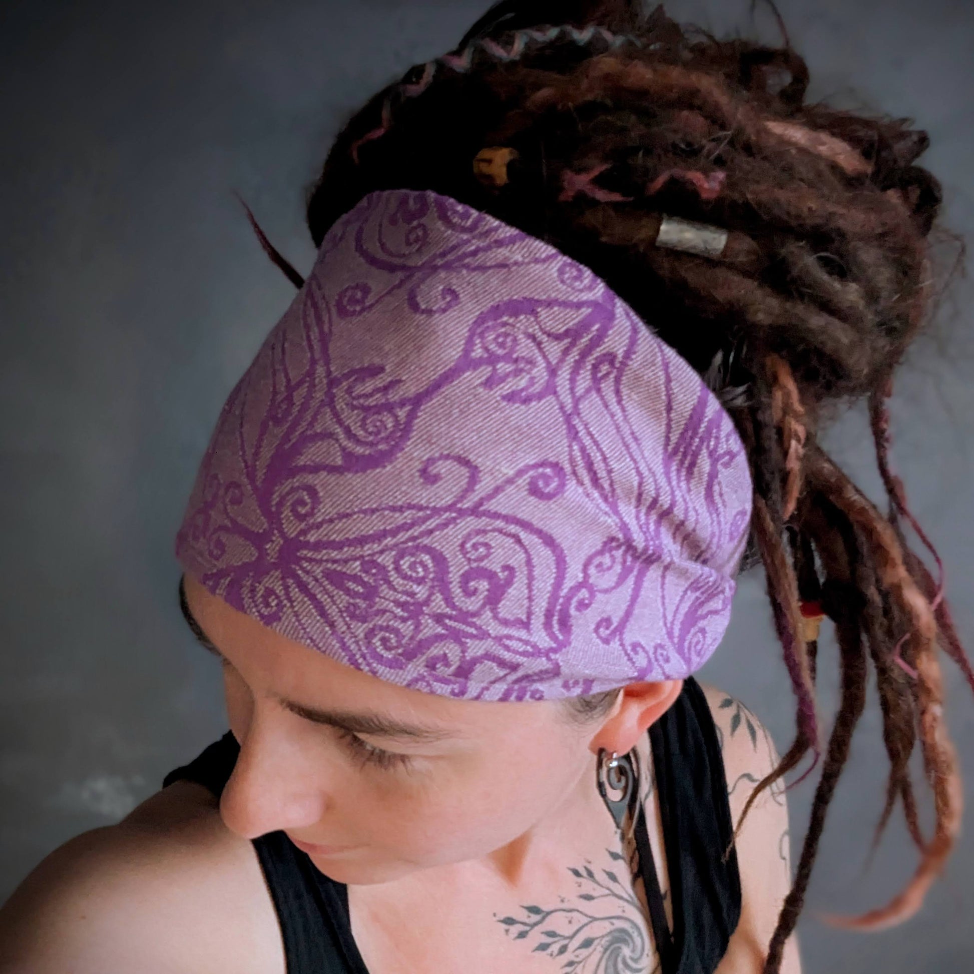 Praktická šátková čelenka šitá z odstřižku šátku na nošení dětí (značka Yaro).