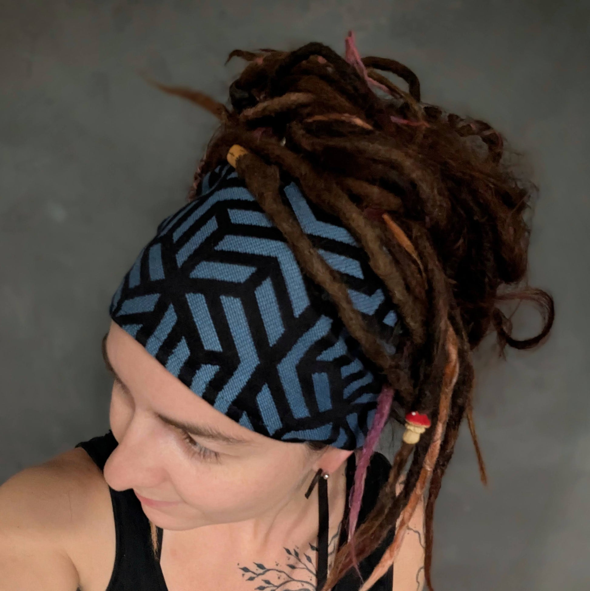 Šátkové čelenky jsou super na sport, na léto, když nechcete, aby vám svítilo na hlavu, ale také chcete-li zkrotit vlasy padající do očí. U copánků jsou ideální na zakrytí odrostů, pokud je máte zapletené už delší dobu a skvěle poslouží i na dready a fakedready. Velikost se snažím šít co nejvíce univerzální.