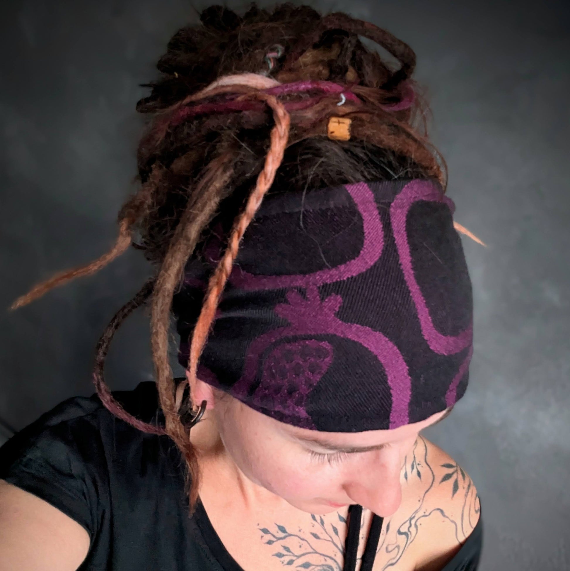 Praktická šátková čelenka šitá z odstřižku šátku na nošení dětí (značka Yaro).