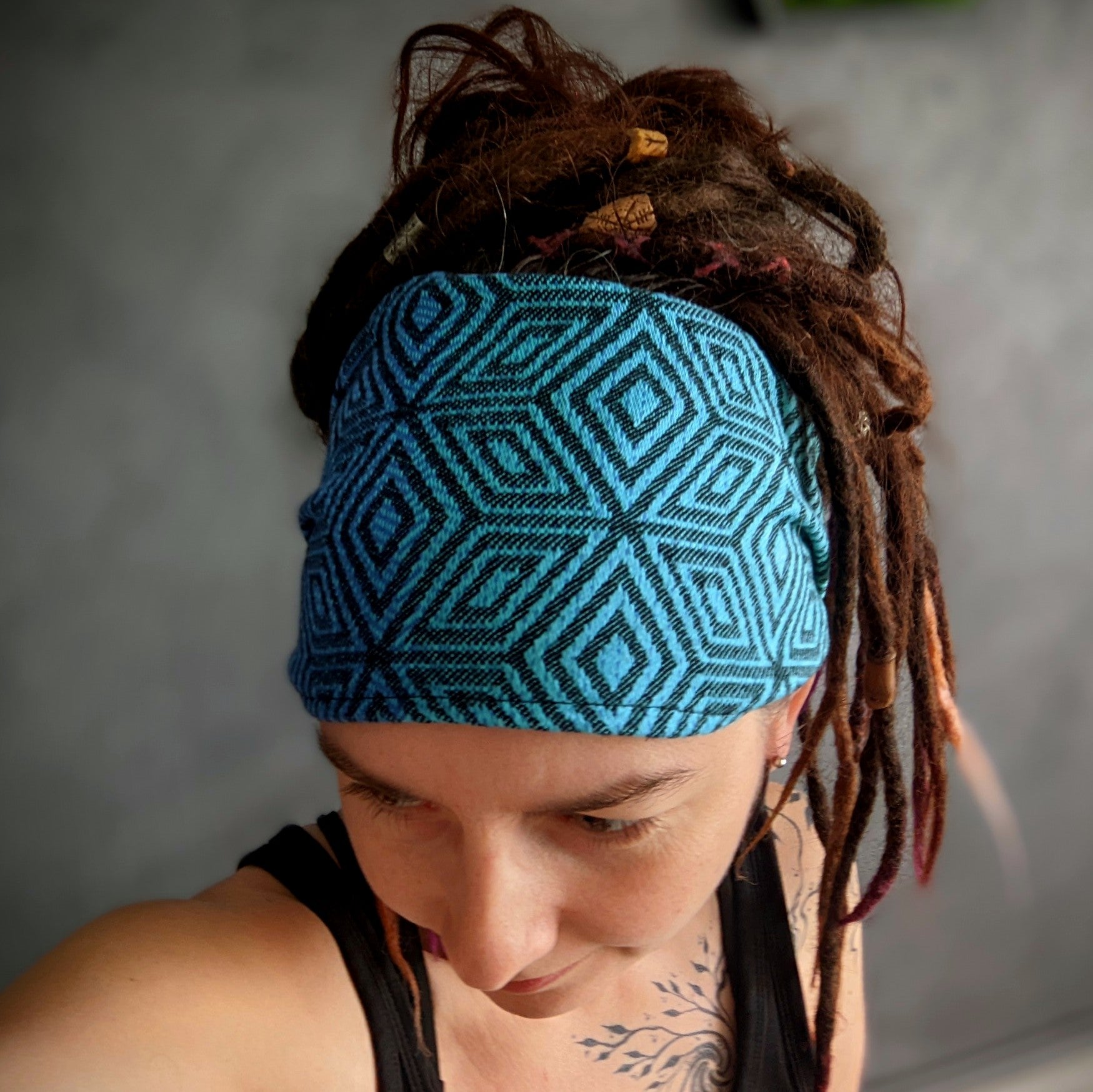 Praktická šátková čelenka šitá z odstřižku z šátku na nošení dětí.