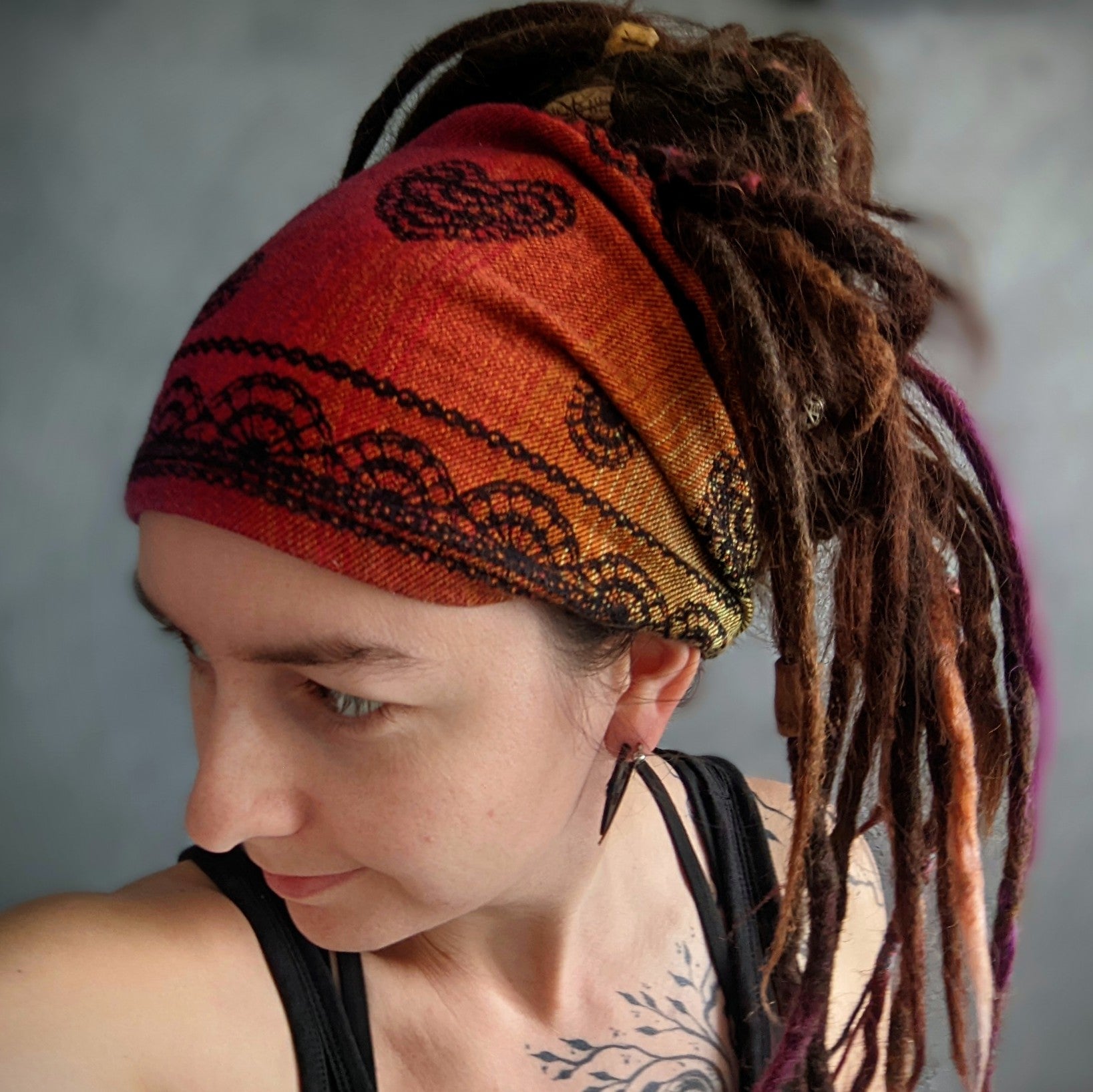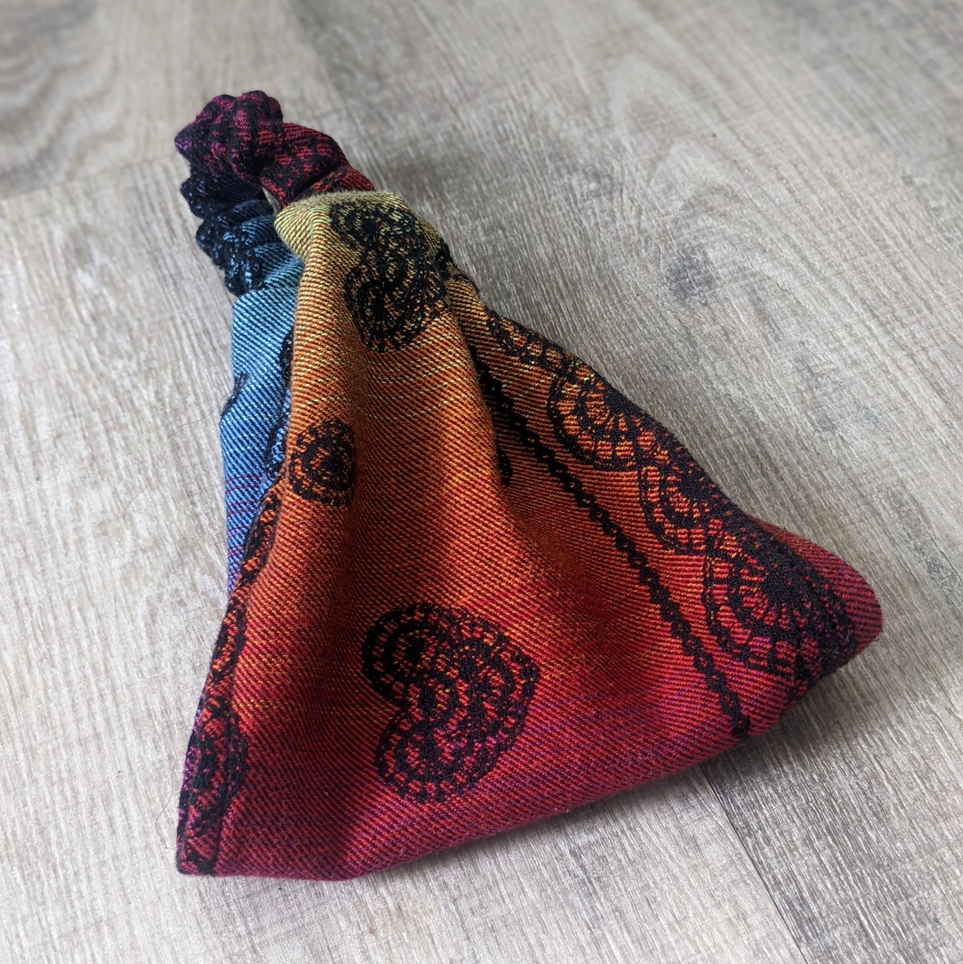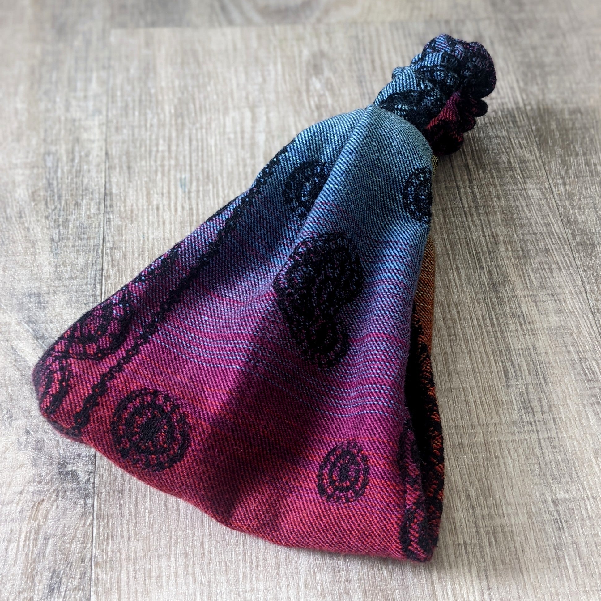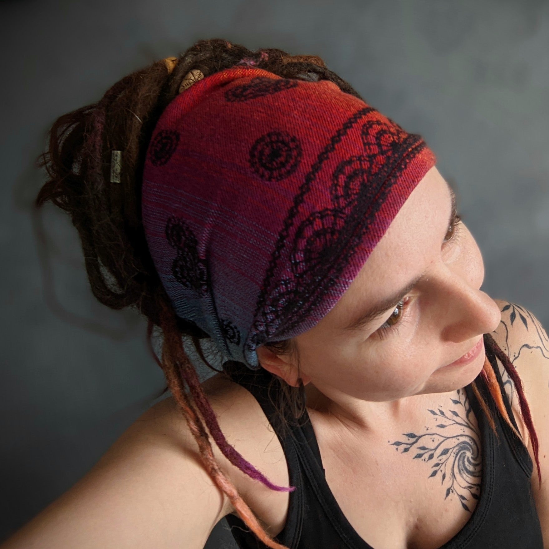 Praktická šátková čelenka šitá z odstřižku z šátku na nošení dětí.