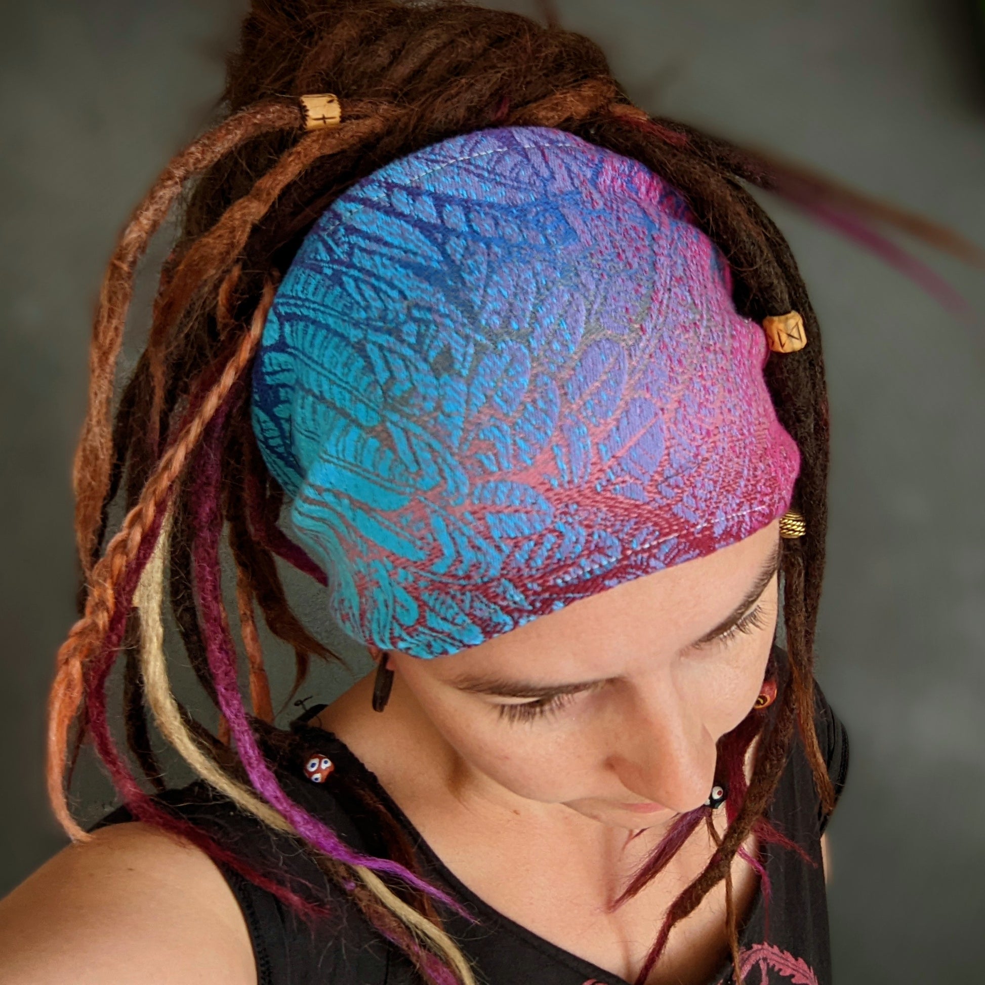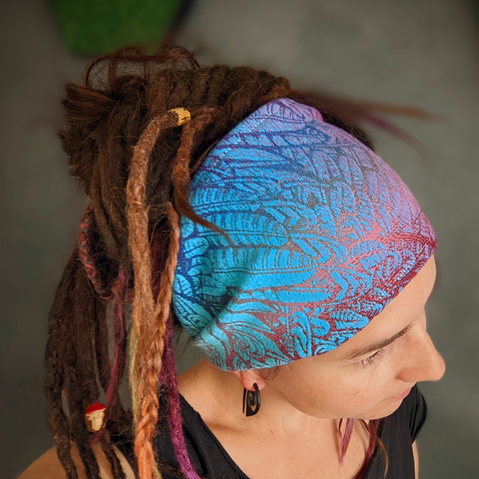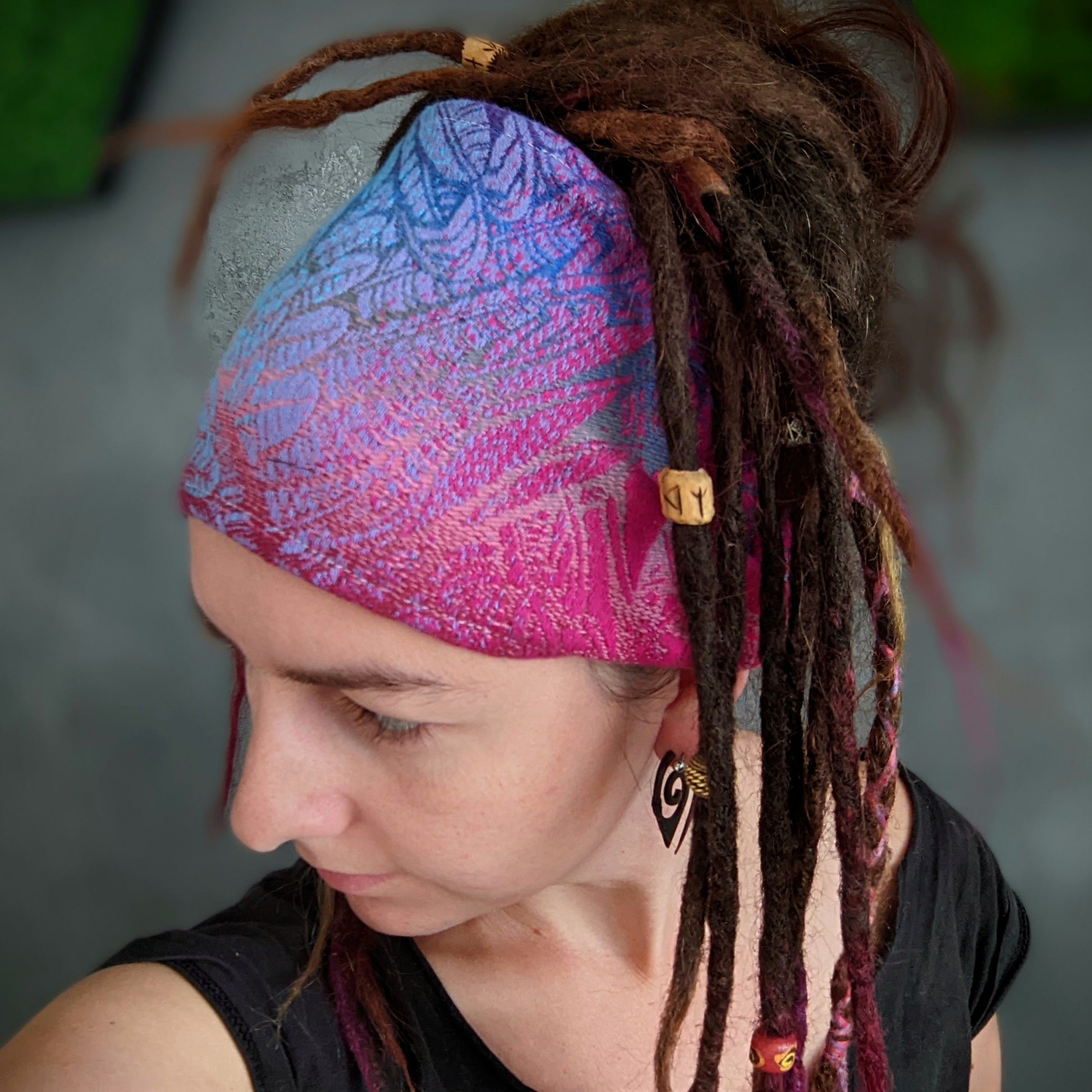 Praktická šátková čelenka šitá z odstřižku z šátku na nošení dětí.