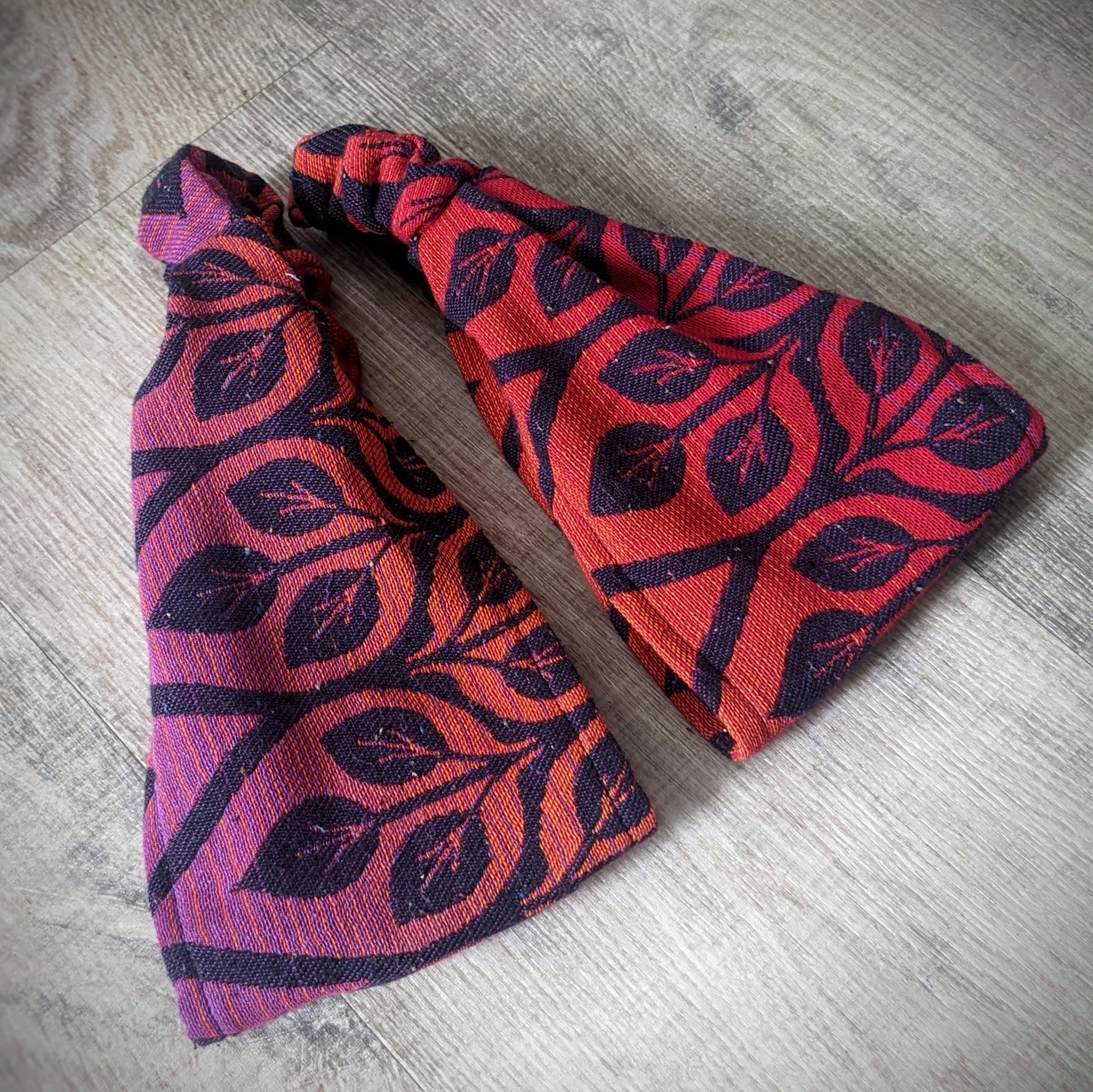 Praktická šátková čelenka šitá z odstřižku z šátku na nošení dětí.
