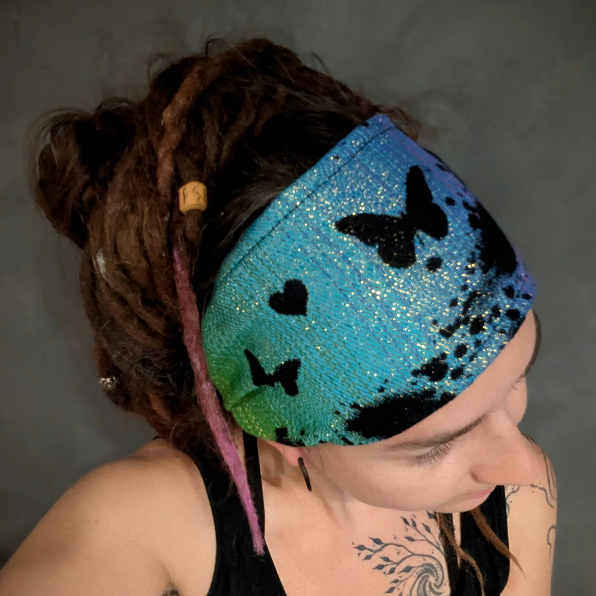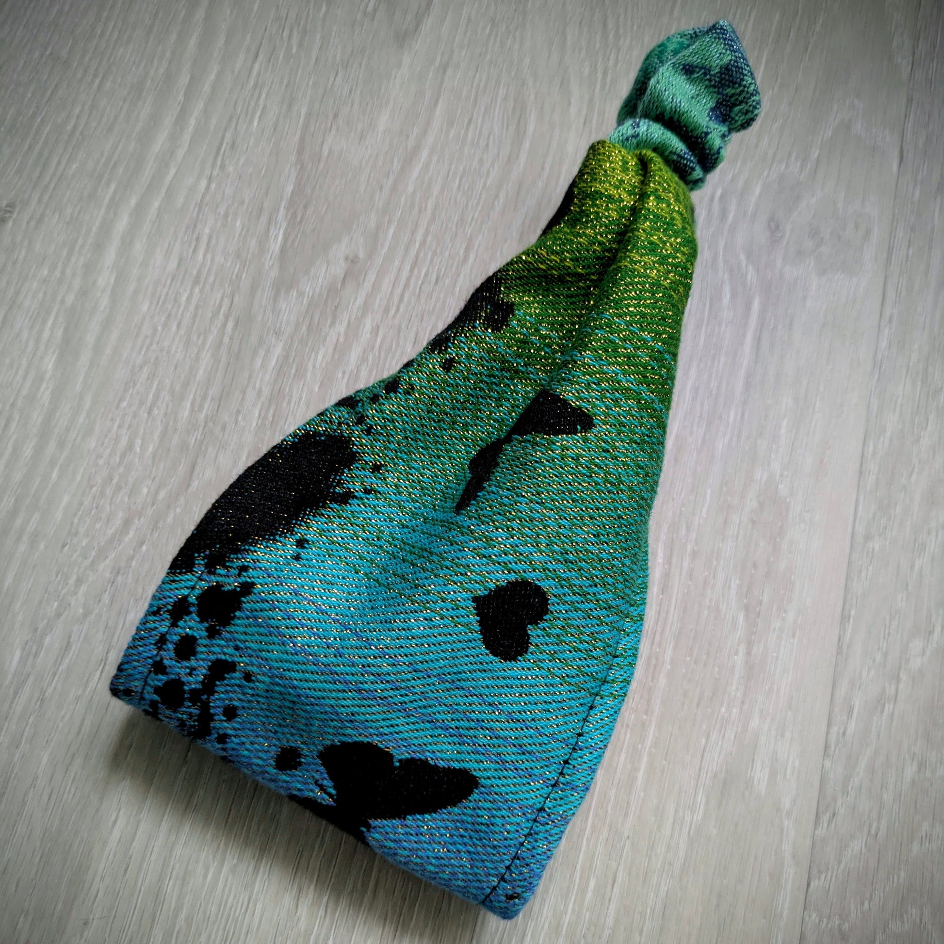 Praktická šátková čelenka šitá z odstřižku šátku na nošení dětí (značka Natibaby).