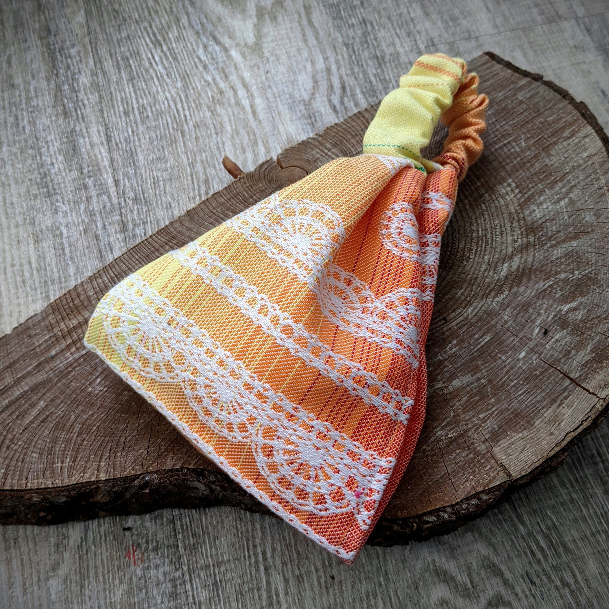 Praktická šátková čelenka šitá z odstřižku z šátku na nošení dětí.