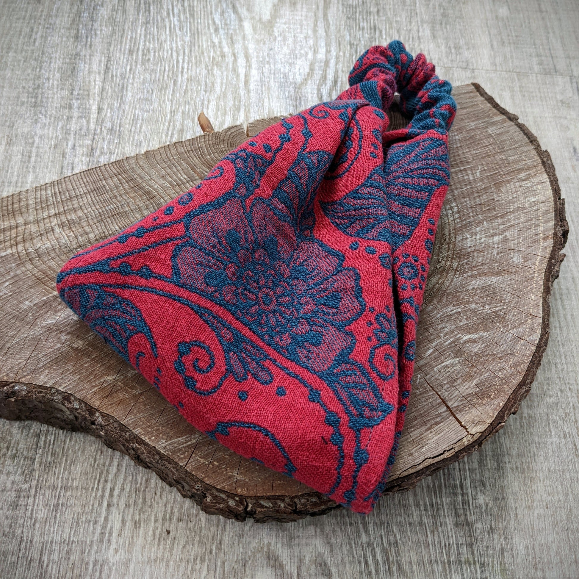 Praktická šátková čelenka šitá z odstřižku z šátku na nošení dětí.