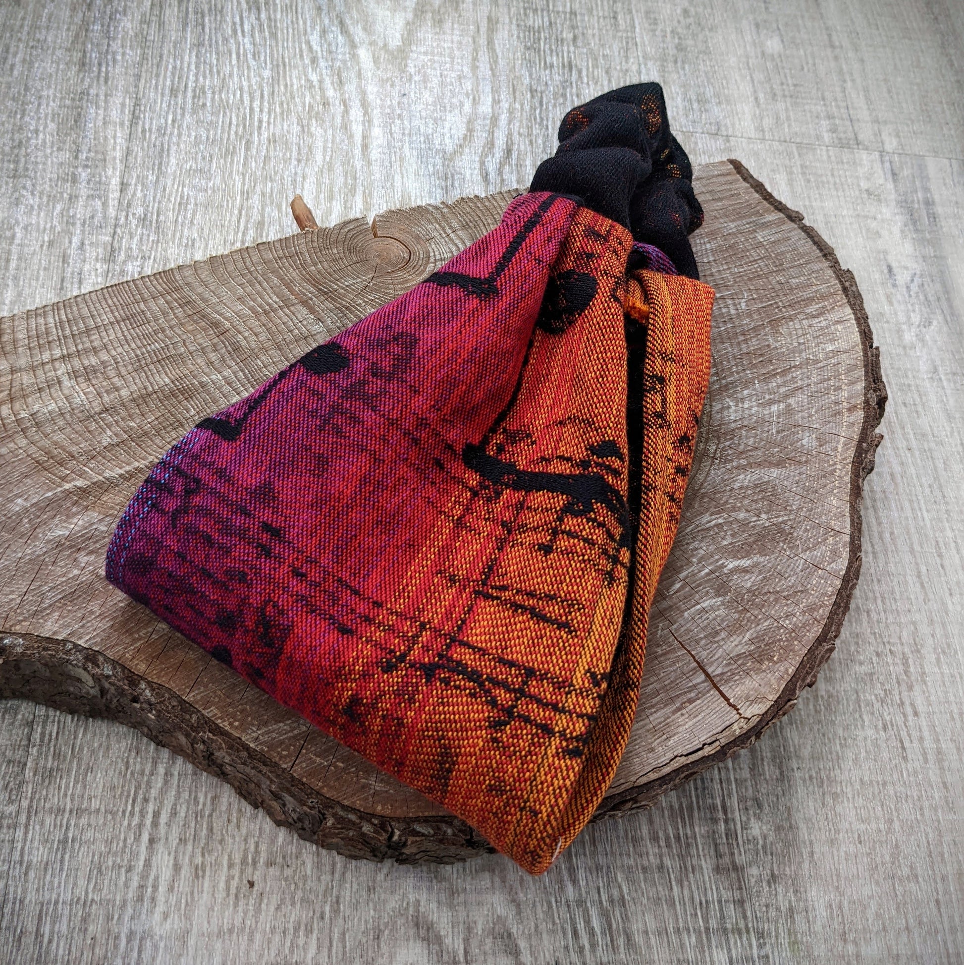 Praktická šátková čelenka šitá z odstřižku z šátku na nošení dětí.