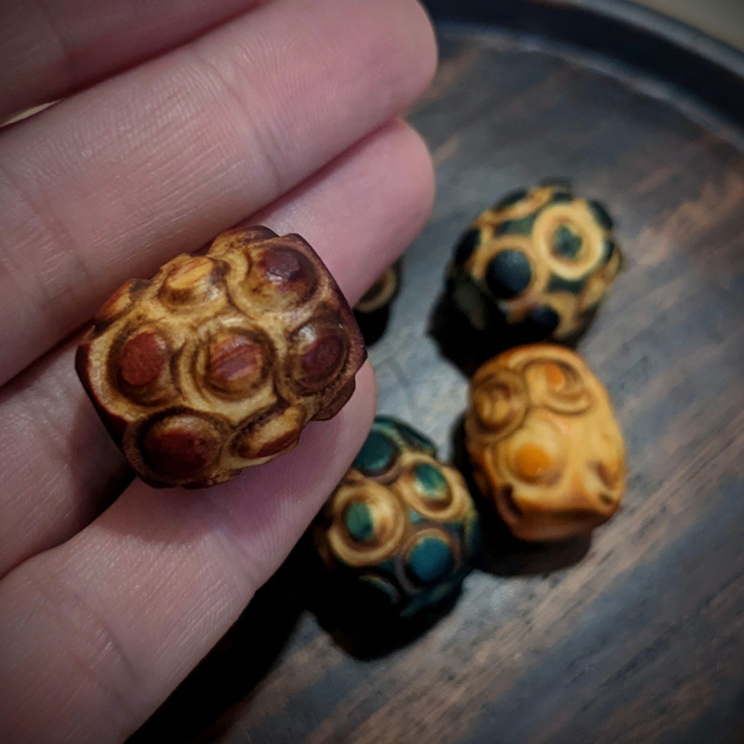Dřevěné ručně vyřezávané korálky od českého výrobce (Gaston), barvené a lakované.